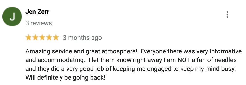 Hundreds of Satisfied Patients: Over 300 5 star Google, Facebook, and Yelp reviews.